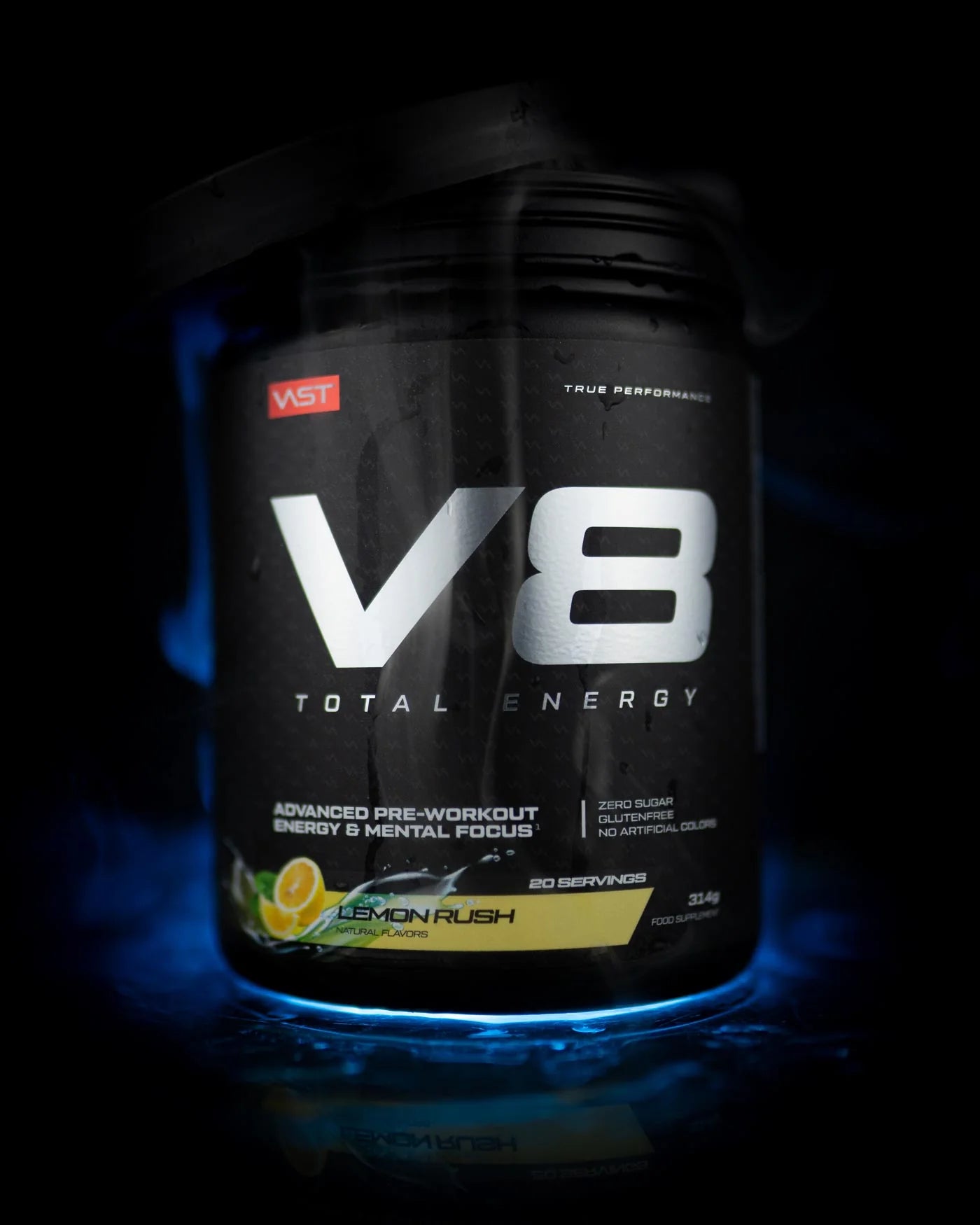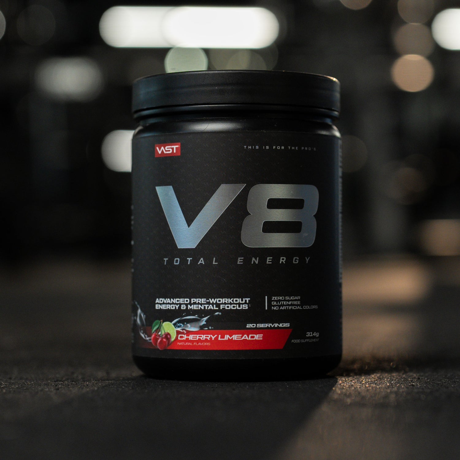 V8 - Total Energy kombiniert ein Jahrzehnt Wissenschaft und Forschung und ist die Evolution in Pre-Workout-Performance.