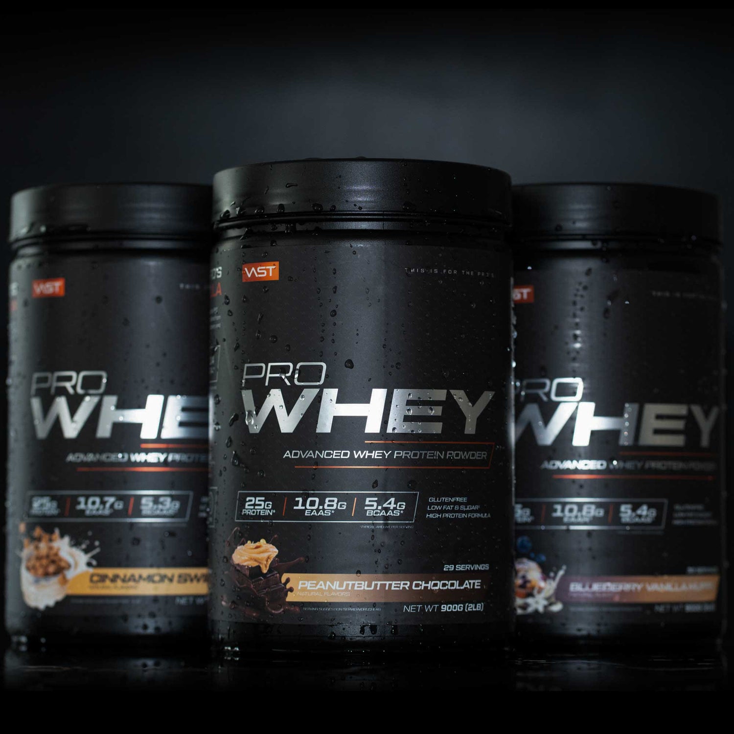 VAST PRO WHEY™ ist der neue Standard von hochwertigen Whey Protein für jeden ambitionierten Athleten. Es liefert 25 g Protein ausschließlich in Form von schnell verdaulichen kaltfiltriertem Whey Isolat und Whey Konzentrat, um deinen täglichen Proteinbedarf zu decken. Darüber hinaus ist VAST PRO WHEY™ fettarm und frei von künstlichen Farbstoffen, Füllstoffen, Gluten und anderen unerwünschten Zutaten. Nimm es zu jeder Tageszeit, vor oder nach dem Training und versorge deinen Körper mit einem Premium-Protein der Spitzenklasse.